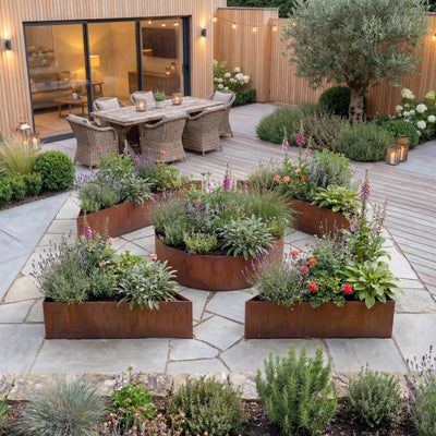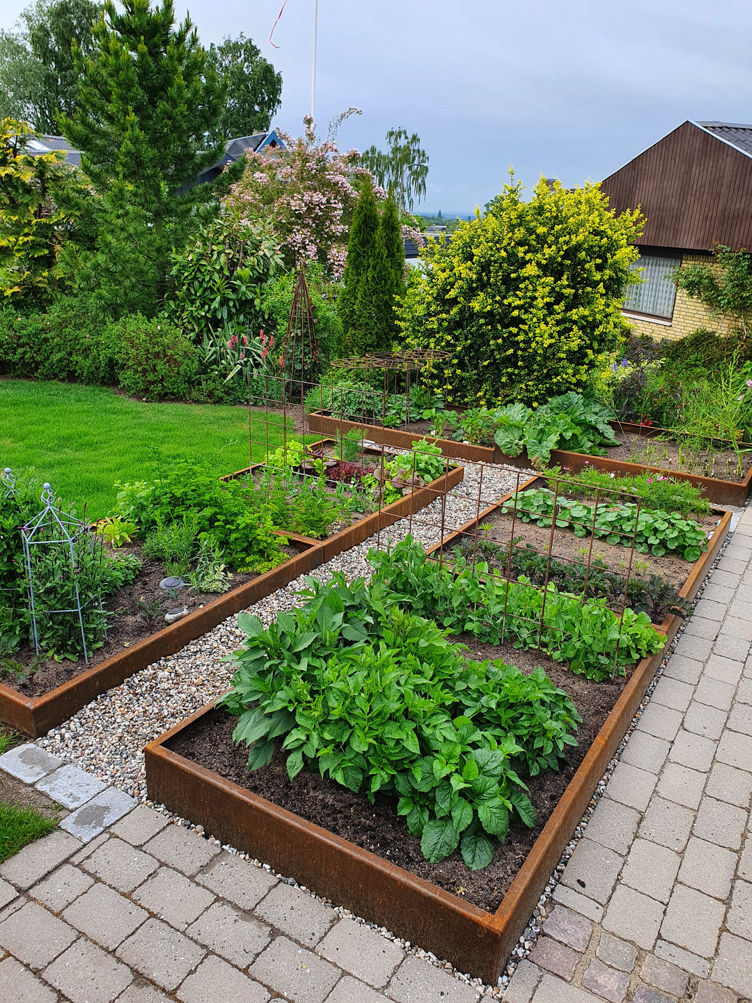Verschönern Sie Ihren Garten mit Beeteinfassungen und Rasenkanten aus Cortenstahl oder Eisen. Erhältlich in verschiedenen Höhen und Längen, passend für Ihren Bedarf.
