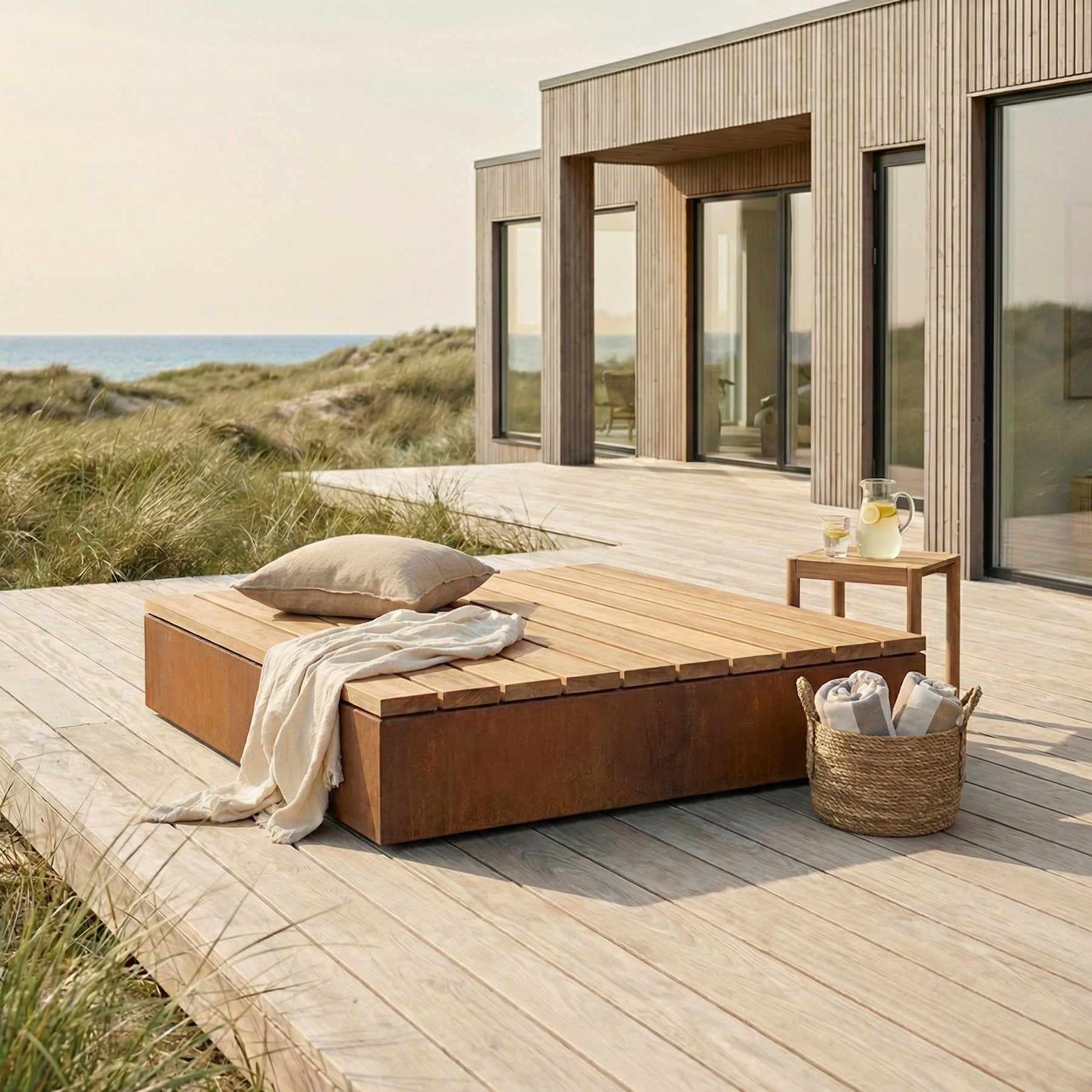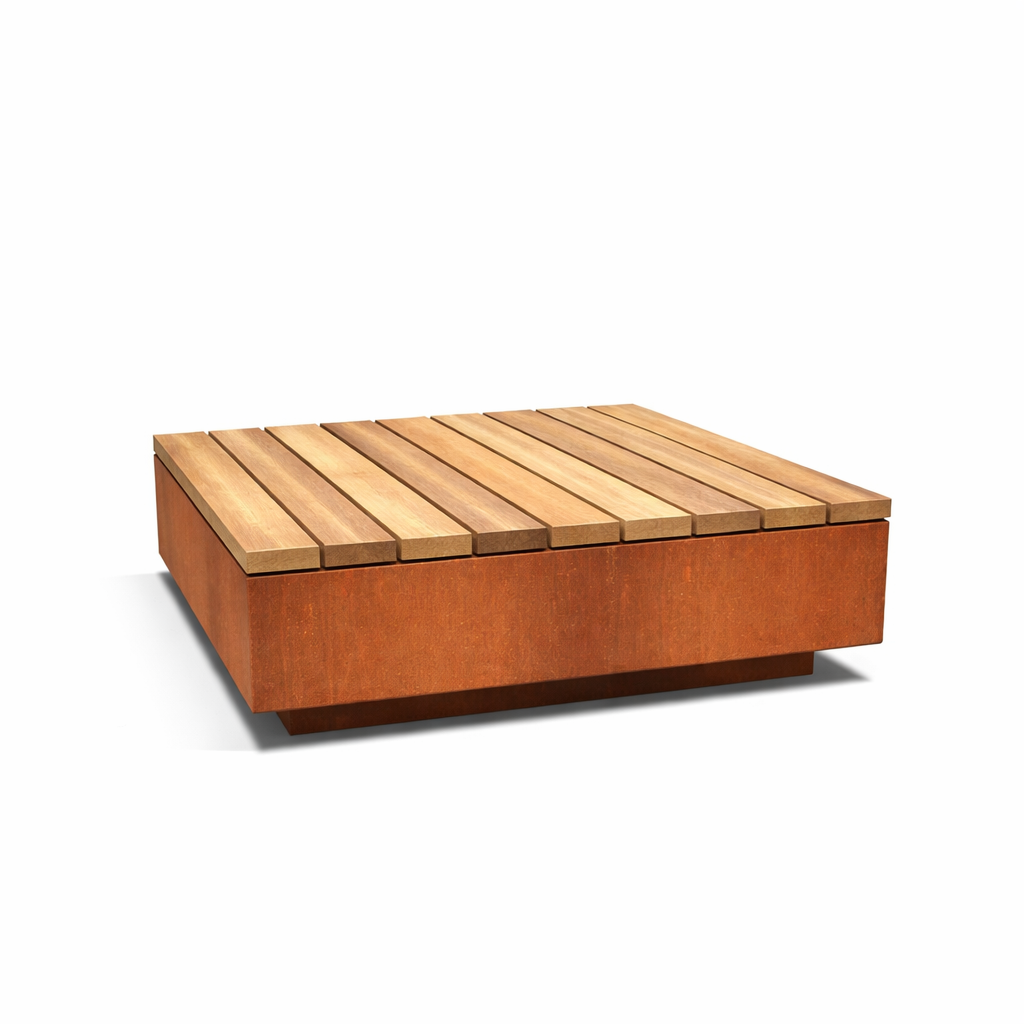Quadratische Bank/Plattform aus Cortenstahl